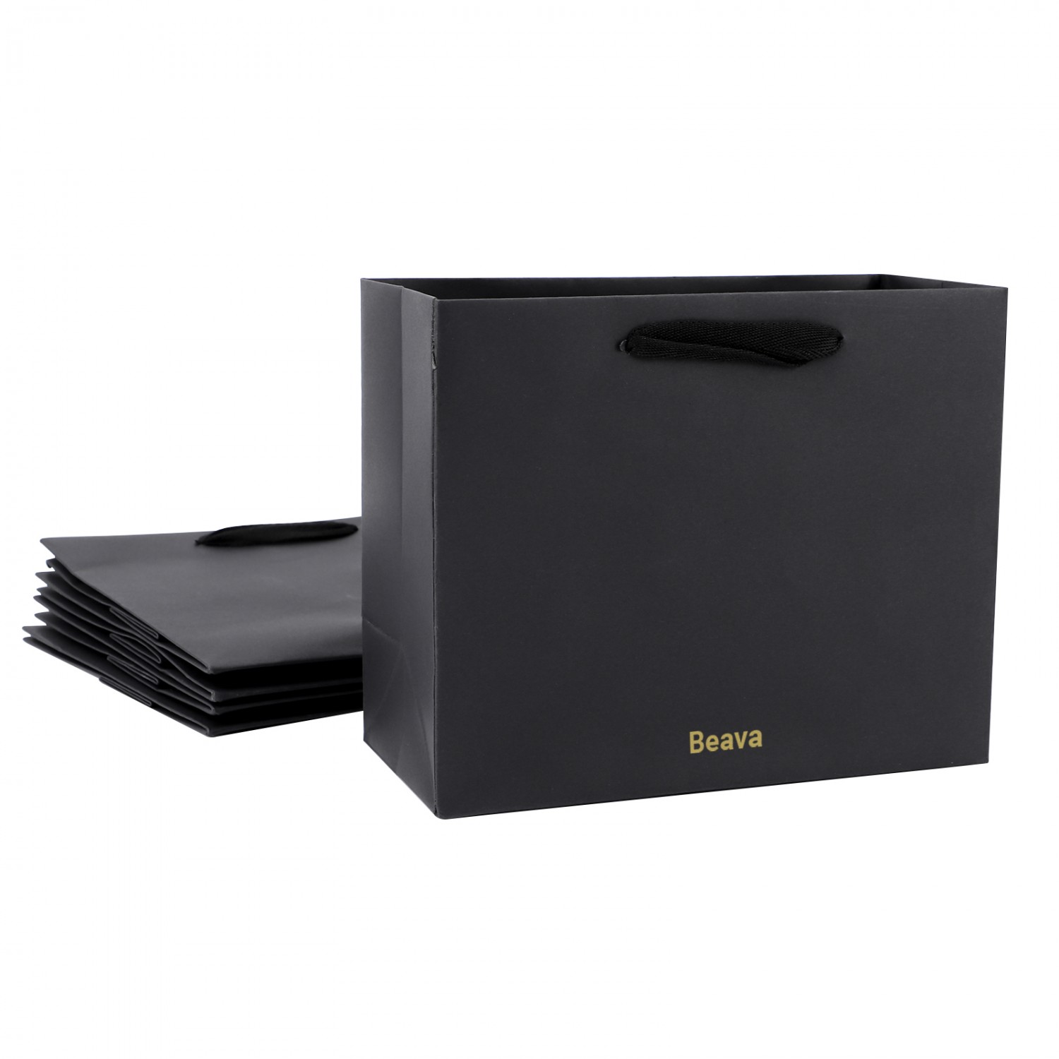 Simple tylish black paper bags with handles, perfect for gift wrapping, retail packaging, parties, and daily use.